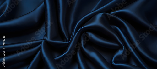 © creative art, Fototapeta premium Black drapery silk fabric luxury background. Wavy abstract satin cloth vector texture pattern. Smooth shiny drape material curtain. Elegant velvet curve motion image realistic horizontal design.