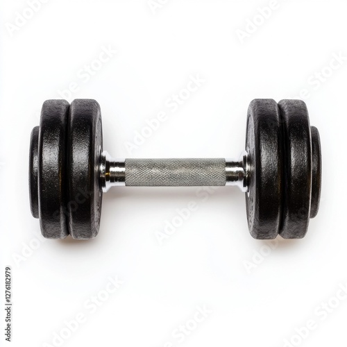 Fototapeta premium Black dumbbell, fitness equipment, training tool for strength, isolated on white background, essential for workouts.