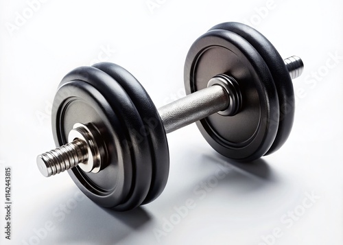 © Four888, Fototapeta premium Black Dumbbell Fitness Photography, Weight Training, Gym Equipment, Minimalist Workout, White Background, Exercise, Strength Training, Sport, Health