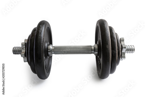 © fosupaksorn, Fototapeta premium black dumbbell in on white