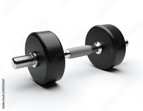 Fototapeta premium Black dumbbell on a white isolated background, ideal for fitness, exercise, gym promotions, and health-related projects, showcasing strength training and physical activity.