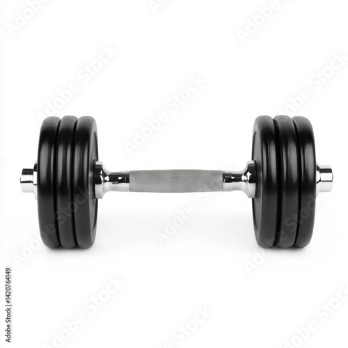 Fototapeta premium Black dumbbell on solid white background with iron handle for fitness training and weightlifting