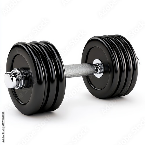 © Sengphachanh25, Naklejka premium Black Dumbbell on White Background Fitness and Strength Training