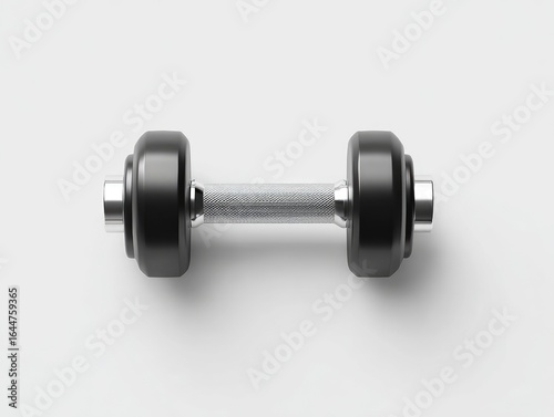 © Abdu, Fototapeta premium Black dumbbell on white background. Flat lay view