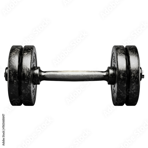 Fototapeta premium Black dumbbell with a silver handle is shown