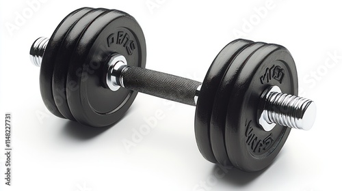 © mochalfin, Naklejka premium Black dumbbell with chrome handle isolated on white background.