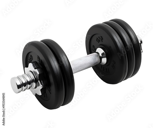 © Dentma Art, Naklejka premium Black Dumbbell with Chrome Handle on White Background