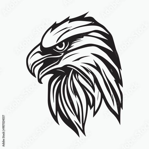 Obraz premium Black eagle head logo Vector Silhouette on white