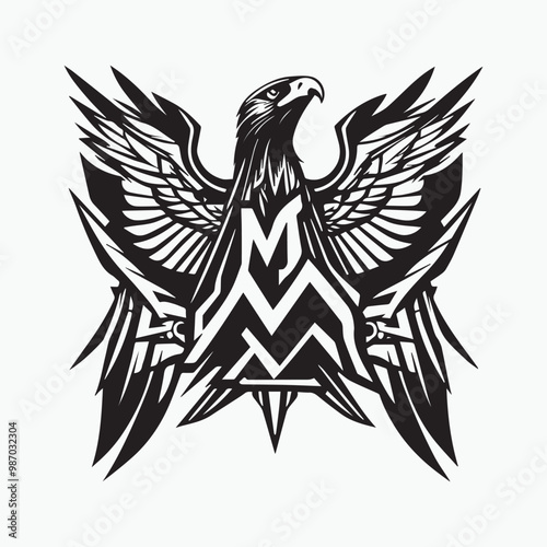 Obraz premium Black eagle head logo Vector Silhouette on white