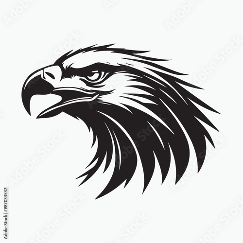 Obraz premium Black eagle head logo Vector Silhouette on white
