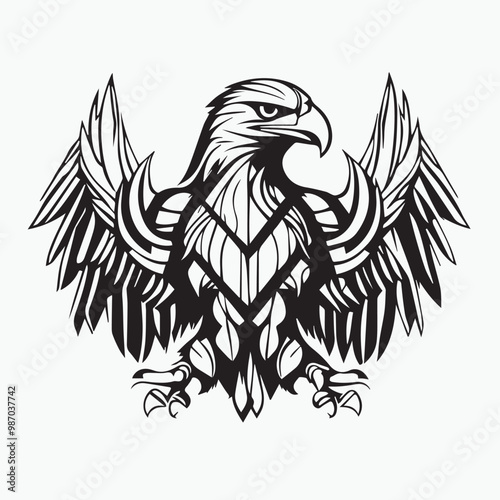 Obraz premium Black eagle head logo Vector Silhouette on white