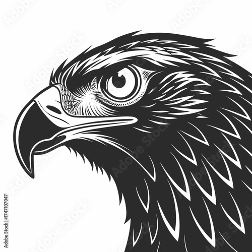 © MST NASIMA KHATUM, Fototapeta premium Black eagle head profile with large eye white background