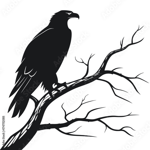© MST NASIMA KHATUM, Obraz premium Black eagle perched on bare tree branch silhouette