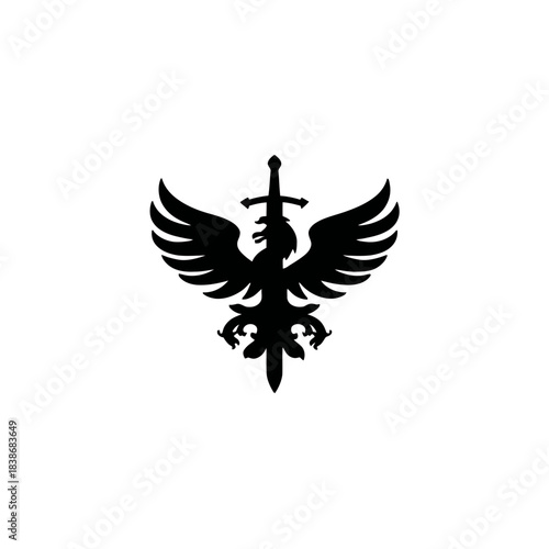 © jonny, Obraz premium Black eagle silhouette with sword and wings symbol on white background
