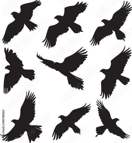 Obraz premium Black Eagle Silhouettes in Flight, Vector Illustration, Wildlife Art