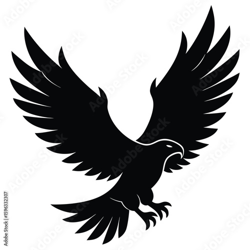 © Aleya, Obraz premium Black eagle soaring wings spread wide bird flying