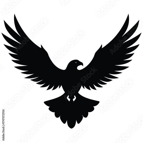 © shahin, Obraz premium Black eagle soaring wings spread wide bird flying