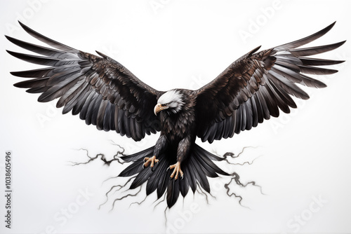 © Brigitte, Naklejka premium Black eagle tattoo on white background. Eagle tattoo. Bird tattoo. Tattoo ideas. For tattoo artists. Tattoo parlor. Love tattoo. Black ink. My tattoo.