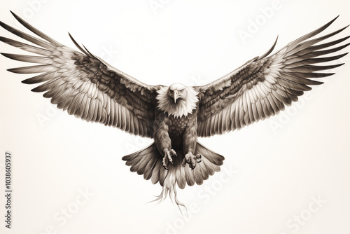 © Brigitte, Naklejka premium Black eagle tattoo on white background. Eagle tattoo. Bird tattoo. Tattoo ideas. For tattoo artists. Tattoo parlor. Love tattoo. Black ink. My tattoo.