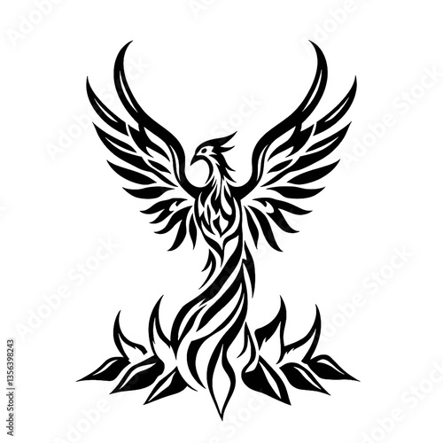 Obraz premium Black eagle vector tattoo design, wings spread, a powerful animal silhouette