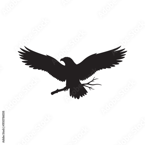 © Awais, Obraz premium Black Eagle with branch silhouette vector illustration