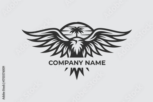 Obraz premium Black eagle with palm tree above on white background in vector