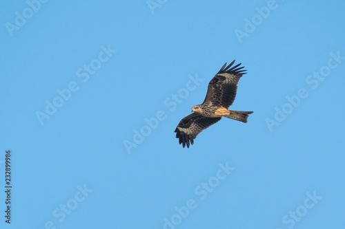 © voraphong pirawd, Obraz premium Black-eared Kite flying on the blue sky, Thailand