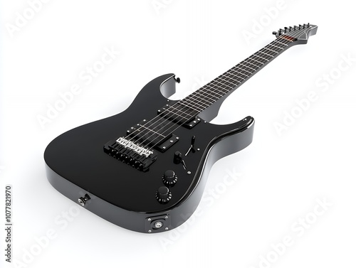 © danadesa, Fototapeta premium Black electric guitar isolated on white background.