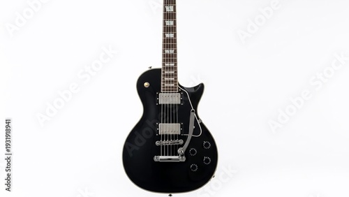 Fototapeta premium Black Electric Guitar on White Background.