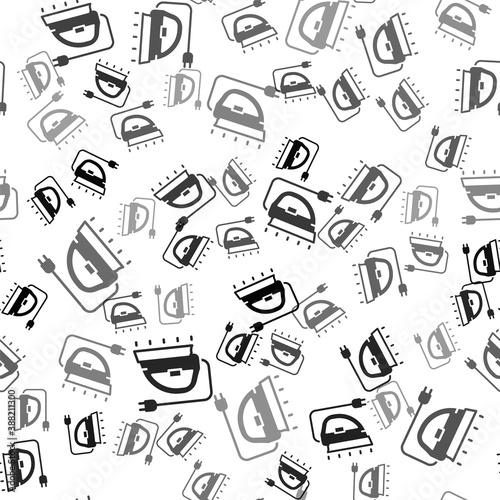 © Kostiantyn, Fototapeta premium Black Electric iron icon isolated seamless pattern on white background. Steam iron. Vector.