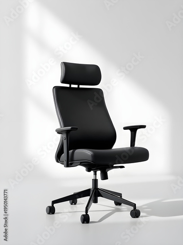 © Salman, Fototapeta premium Black ergonomic office chair with neutral background