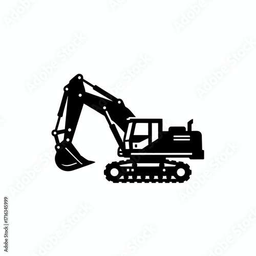 Naklejka premium Black excavator silhouette icon, a symbol of construction and heavy machinery used for digging and earthmoving.