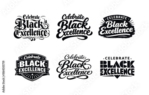 © Alina Sukach, Fototapeta premium Black Excellence Lettering Grid. Celebrate Black excellence. Set lettering. harmonious lettering variations of the same emblematic concept, each with different