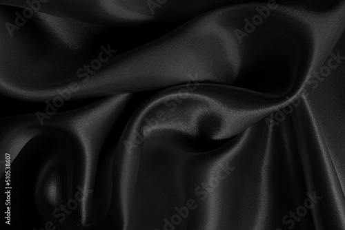 Fototapeta premium Black fabric cloth texture for background and design art work, beautiful crumpled pattern of silk or linen.