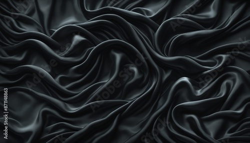 Fototapeta premium Black fabric draped in a series of smooth, flowing, and wavy patterns, creating a visually appealing abstract design