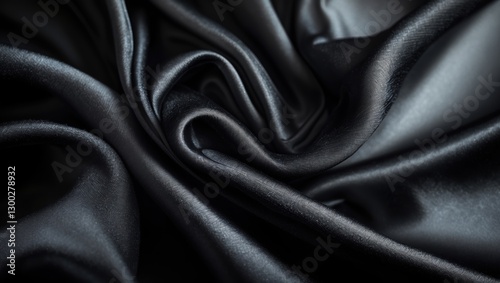 Fototapeta premium Black fabric folds. Silky cloth background showing dark color and shiny surface. Smooth material texture with rich tone.