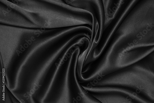 Obraz premium Black fabric texture background, wavy fabric slippery black color, luxury...