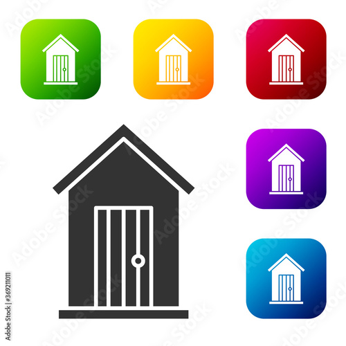 Fototapeta premium Black Farm house icon isolated on white background. Set icons in color square...