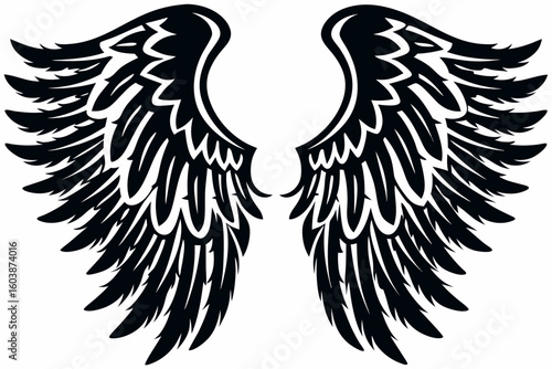 Obraz premium Black Feathered Angel Wings Vector – Symmetrical Wing Tattoo Design