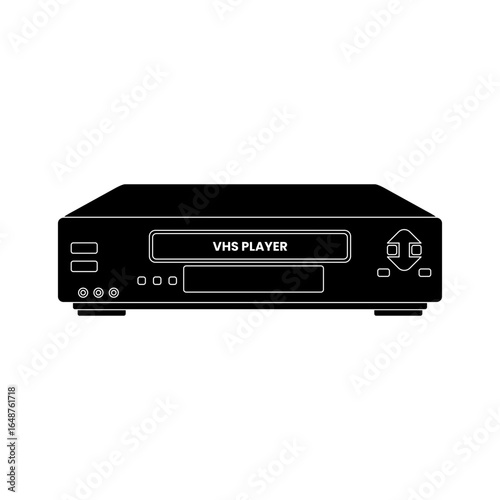 © Fasih Abdullah, Obraz premium Black fill silhouette vector icon of a VHS player, featuring front panel controls and cassette slot, symbolizing retro video technology and home entertainment devices.