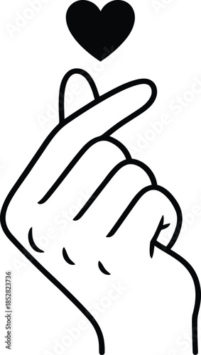 Fototapeta premium Black Finger Heart Love Hand Symbol