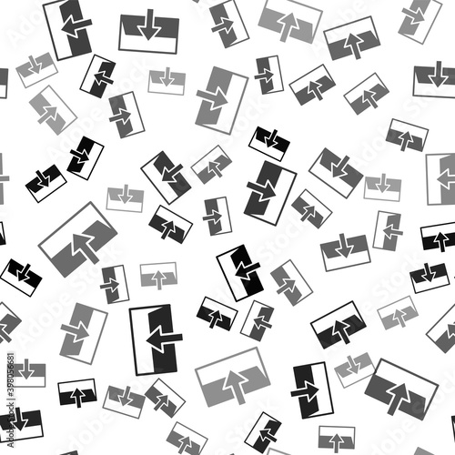 Fototapeta premium Black Fire exit icon isolated seamless pattern on white background. Fire...