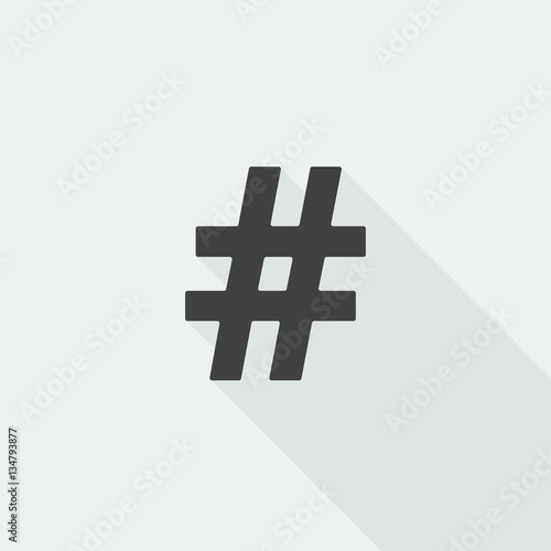 Obraz premium Black flat Hashtag icon with long shadow on white background
