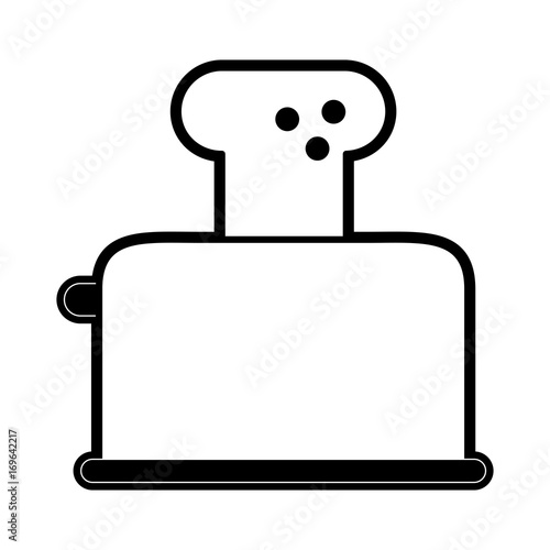 © Jemastock, Obraz premium Black flat line toaster and bread over white background vector illustration