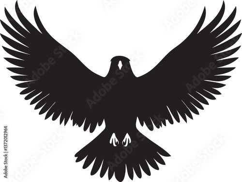 Obraz premium Black flat silhouette vector icon, A large eagle spreading its wings before...