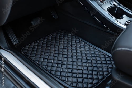 Fototapeta premium Black floor mat with holders in dark vehicle interior