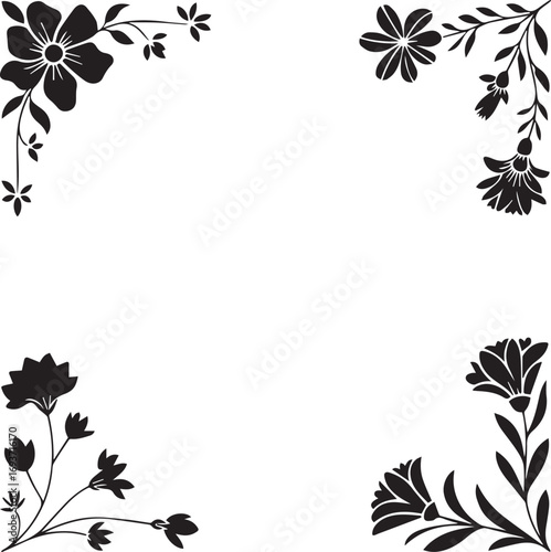 Obraz premium Black floral corner design with lily-like flowers ornament