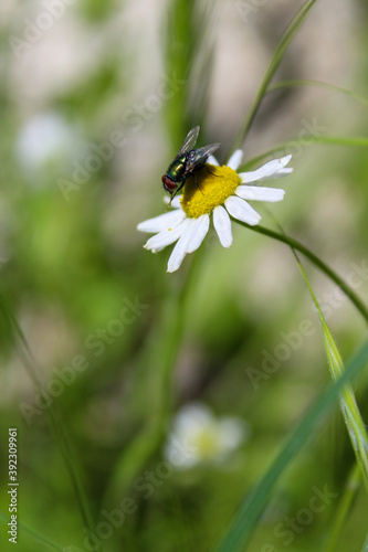 Obraz premium black fly sitting on chamomile flower
