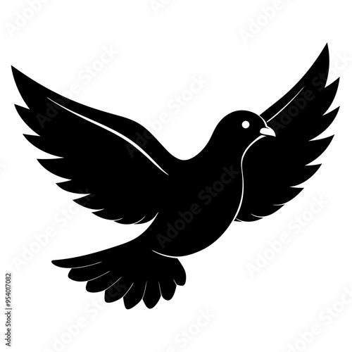 Obraz premium Black flying dove bird silhouette vector illustration