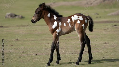 © Ton, Obraz premium Black Foal with White Circular Spots